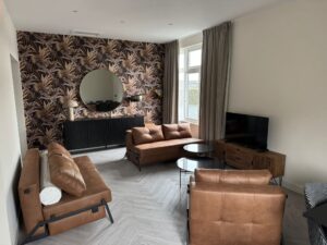De eerste verdieping telt 7 smaakvol ingerichte tweepersoonskamers, uitgevoerd in dezelfde hoogwaardige stijl. Deze kamers beschikken over een luxe boxspring, een zithoek met twee fauteuils en eveneens een complete kitchenette, wat ze uitermate geschikt maakt voor kort en middellang verblijf.
